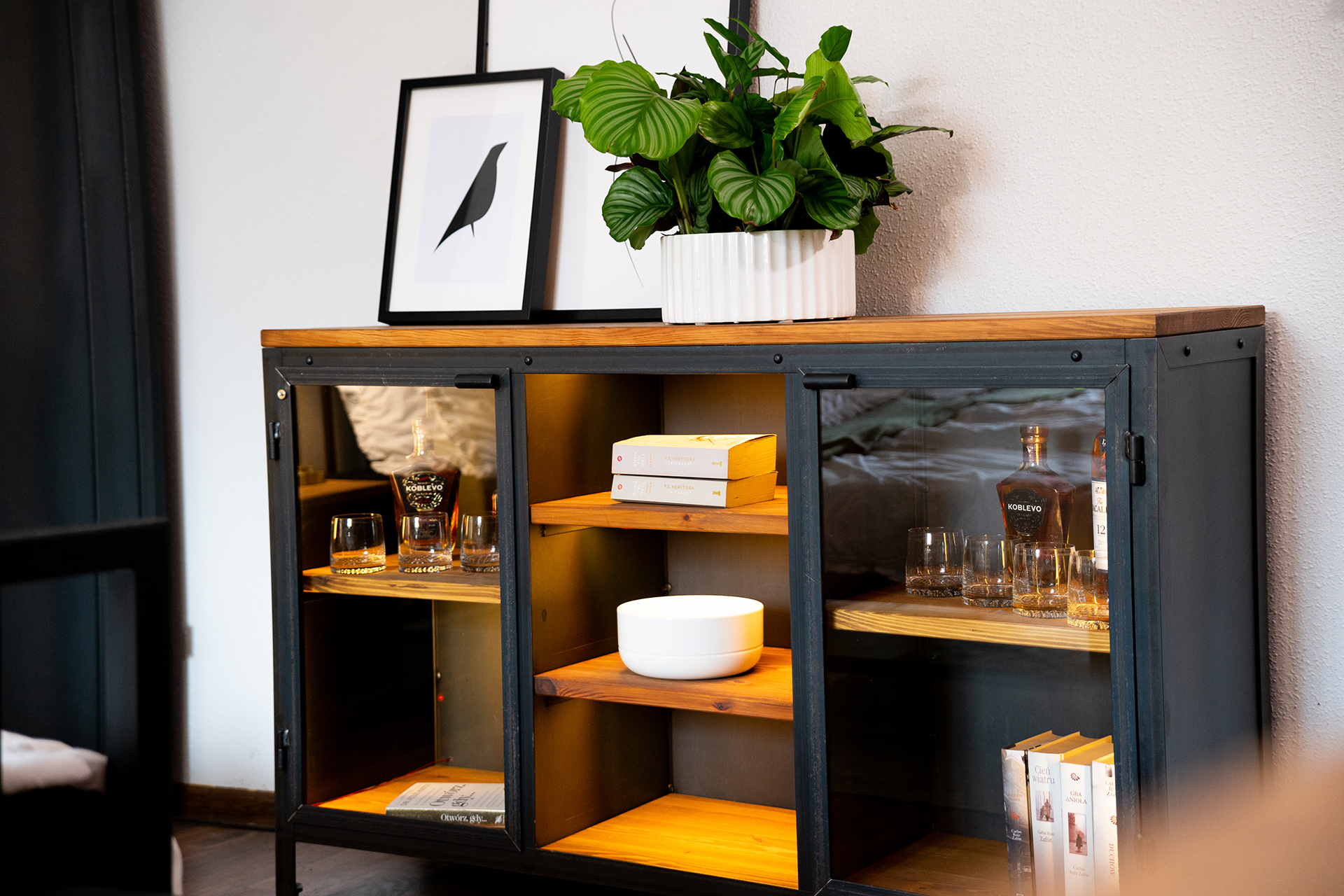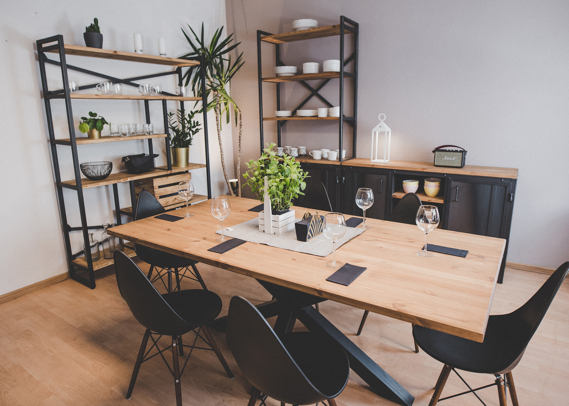 Wir schaffen Möbel, bei denen Stahl, Holz und Glas in einem ausgewogenen Verhältnis von Stärke, Wärme und Leichtigkeit vereint sind.