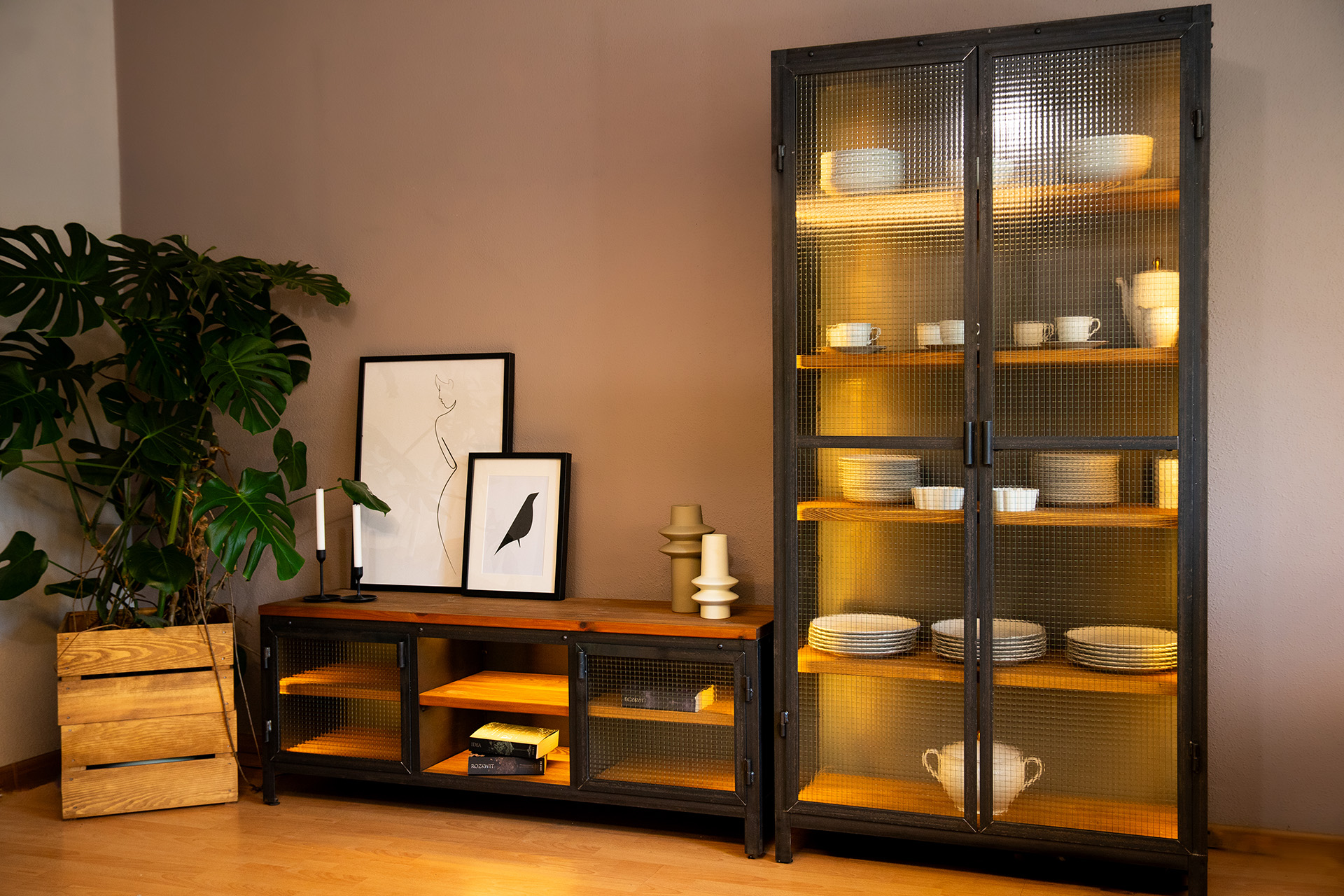 Monumentalna ekspozycja w stalowych ramachKomoda VETRO II