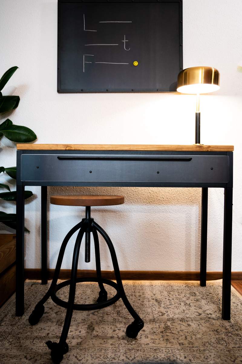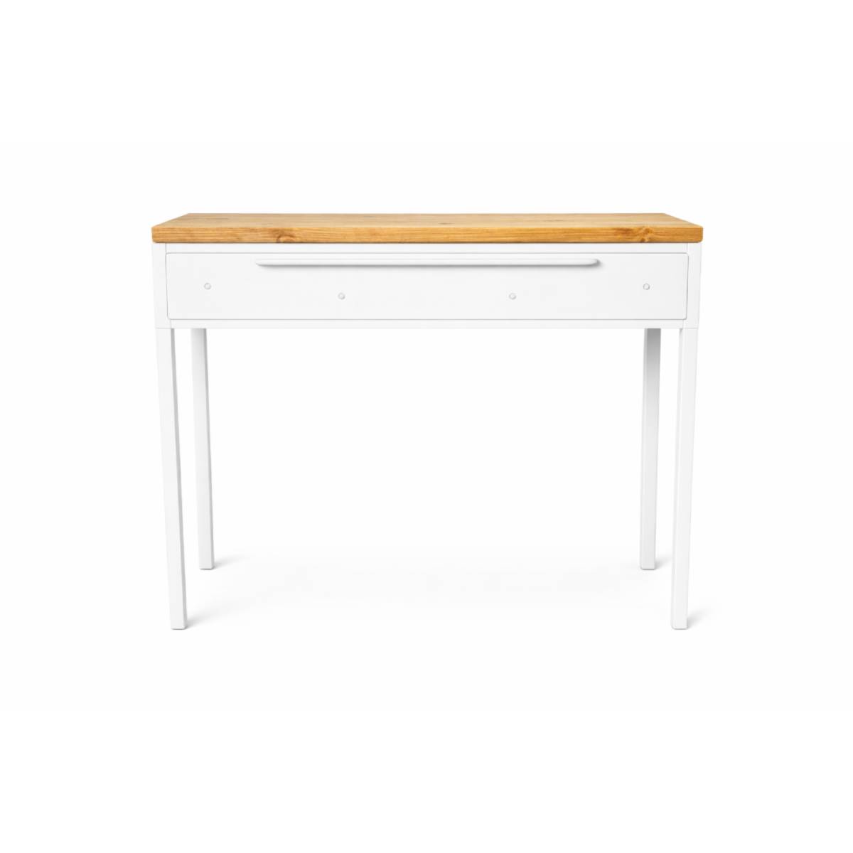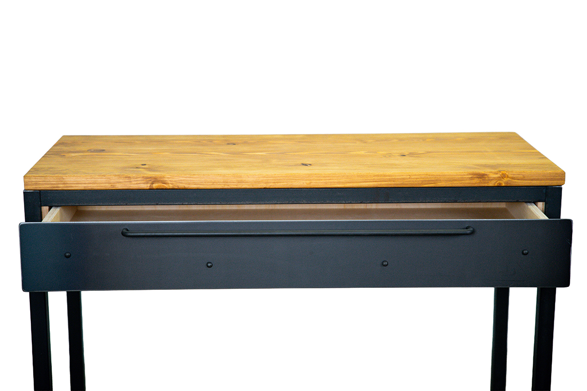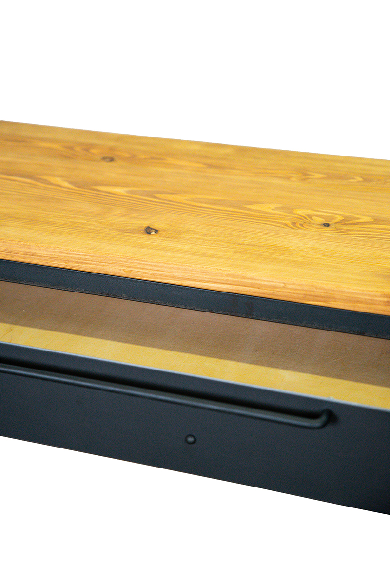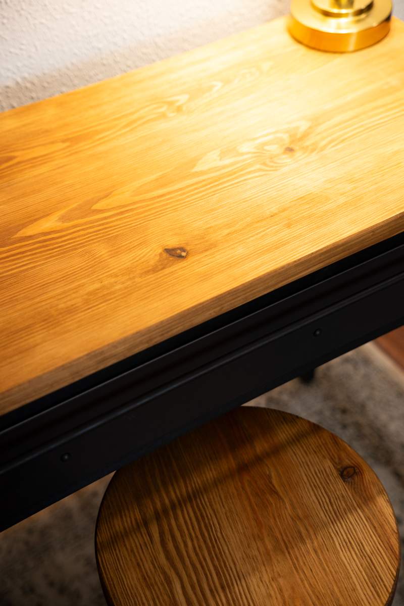 • Solidna podstawa Twoich działań: Blat z naturalnego drewna sosnowego o grubości 28 mm spoczywa na stabilnym, stelażu z pełnych profili stalowych. To połączenie gwarantuje, że biurko stoi pewnie, nie drga i służy Ci przez długie lata, niezmiennie zachwycając swoją prostotą.
