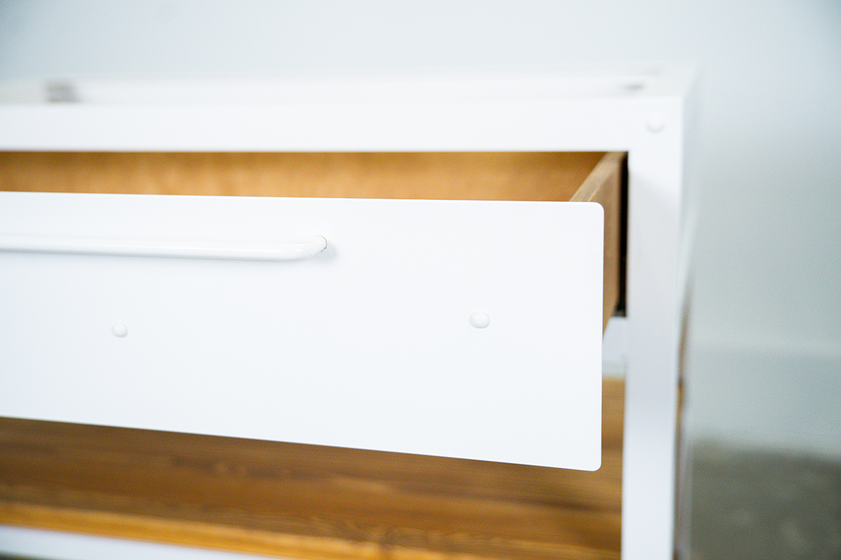 • Szuflada – Twój sprzymierzeniec w walce z chaosem: Największym atutem modelu PIENO S jest dyskretna, płynnie wysuwana szuflada. To tutaj w mgnieniu oka schowasz laptopa, notatki, biżuterię czy kosmetyki, zostawiając na blacie tylko to, co naprawdę cieszy oko. Czysty blat to czysty umysł i większa efektywność.