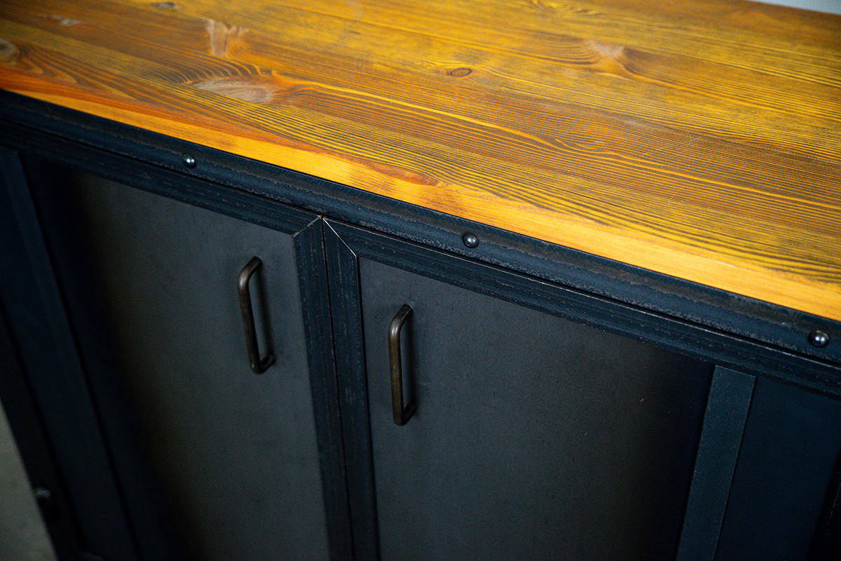 - Naturalne Ciepło: Szeroki blat z sosny nadaje meblowi szlachetności, tworząc niepowtarzalny klimat w surowych, loftowych wnętrzach.
