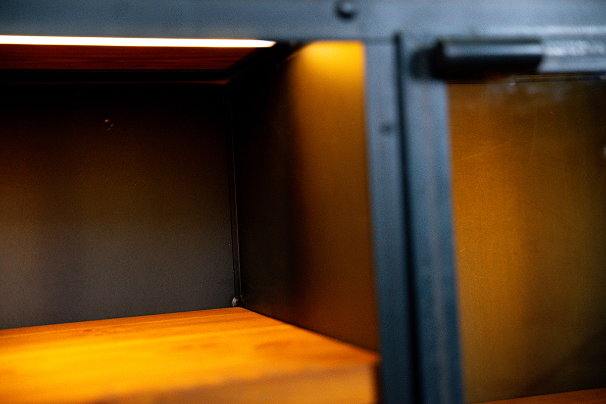 - Industrialny Sznyt: Korpus z blachy walcowanej na gorąco o grubości 2 mm w połączeniu z 4-milimetrowym szkłem to definicja nowoczesnego loftu.