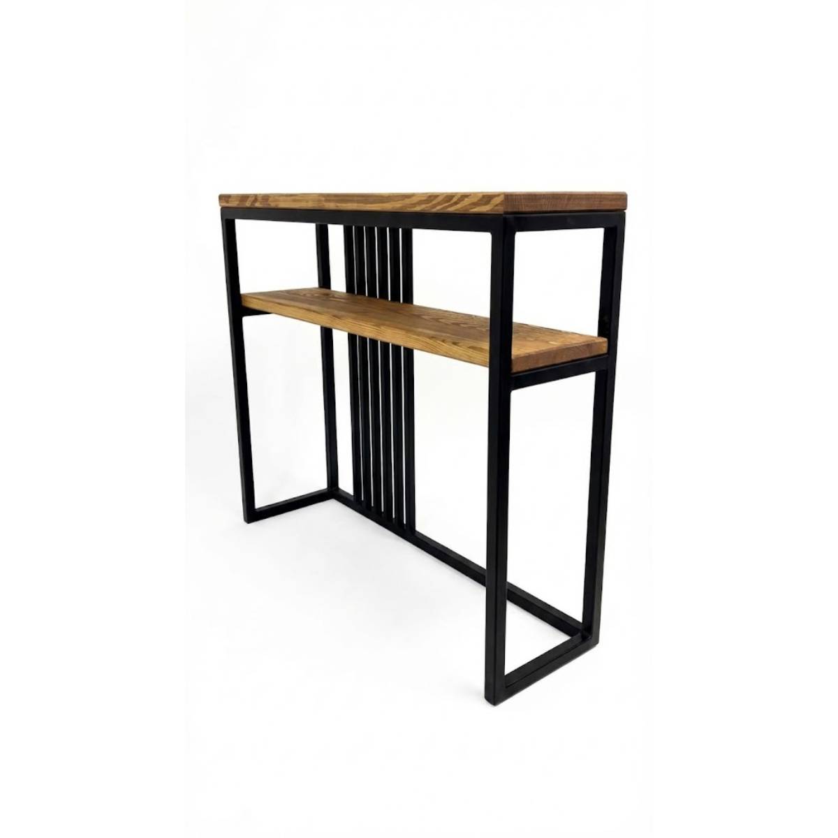 Sercem konstrukcji jest precyzyjnie spawany, stalowy stelaż. Dzięki otwartej strukturze, mebel wydaje się unosić w powietrzu, co czyni go idealnym wyborem nawet do mniejszych pomieszczeń. Zestawienie surowego metalu z ciepłym odcieniem naturalnego drewna tworzy balans, który ociepli surowe, betonowe ściany lub doda pazura klasycznym aranżacjom.