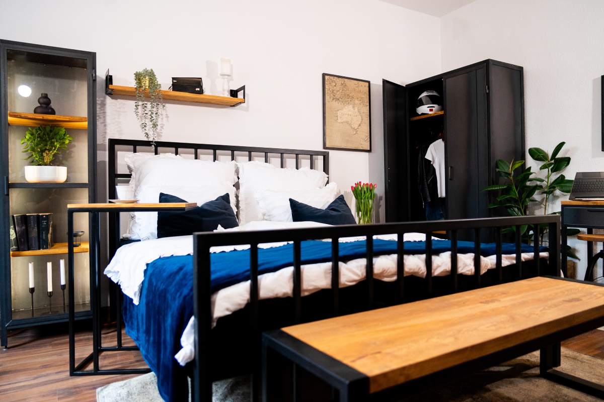 Dominanta Wnętrza: Masywna bryła i industrialny pazur sprawiają, że szafa staje się centralnym punktem aranżacji – od surowego loftu po elegancki showroom czy nowoczesną sypialnię.
